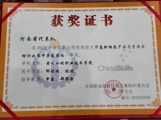 “农产品质量安全检测”赛项获国赛一等奖