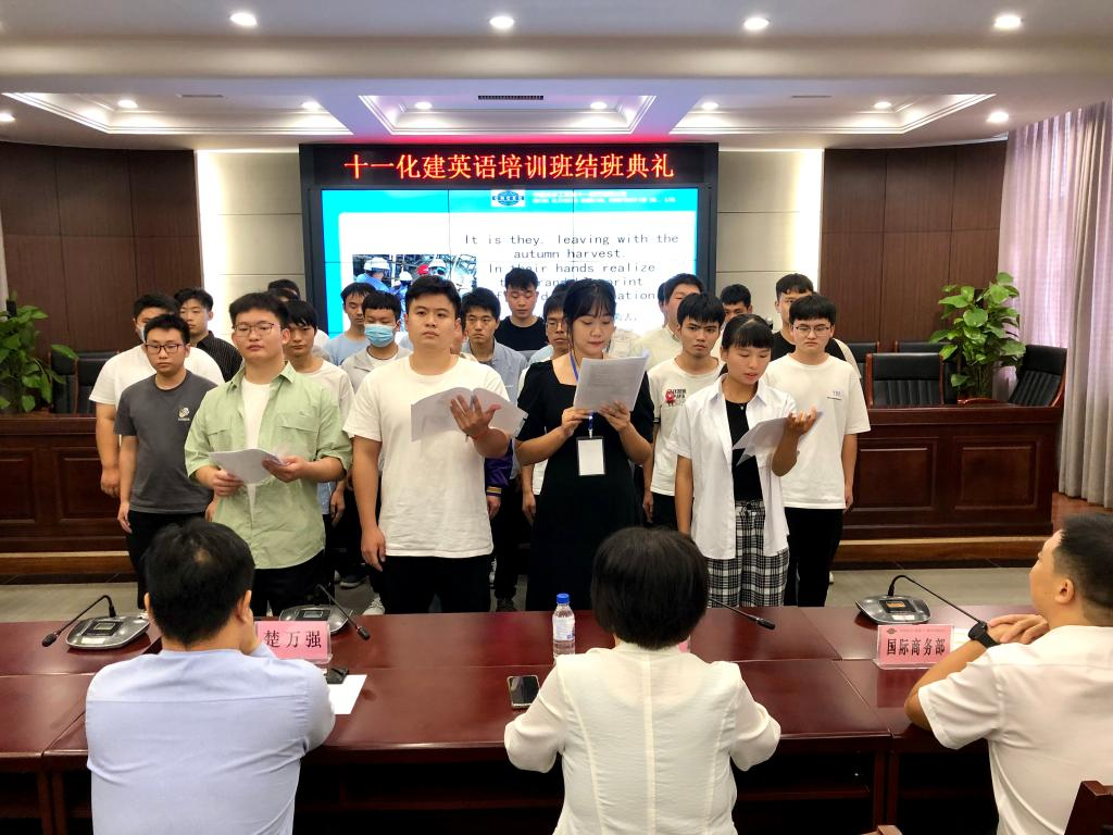9月5日,由国际教育学院承办的“中国化学工程第十一建设有限公司海外工程技术人员英语培训班”在公司多功能报告厅顺利举行结业典礼。公司国际事业部部长杜晓、 国际商务部部长常健华,我校国际教育学院党总支书记楚万强、院长王爱琴、培训班班主任及授课教师参加了典礼。