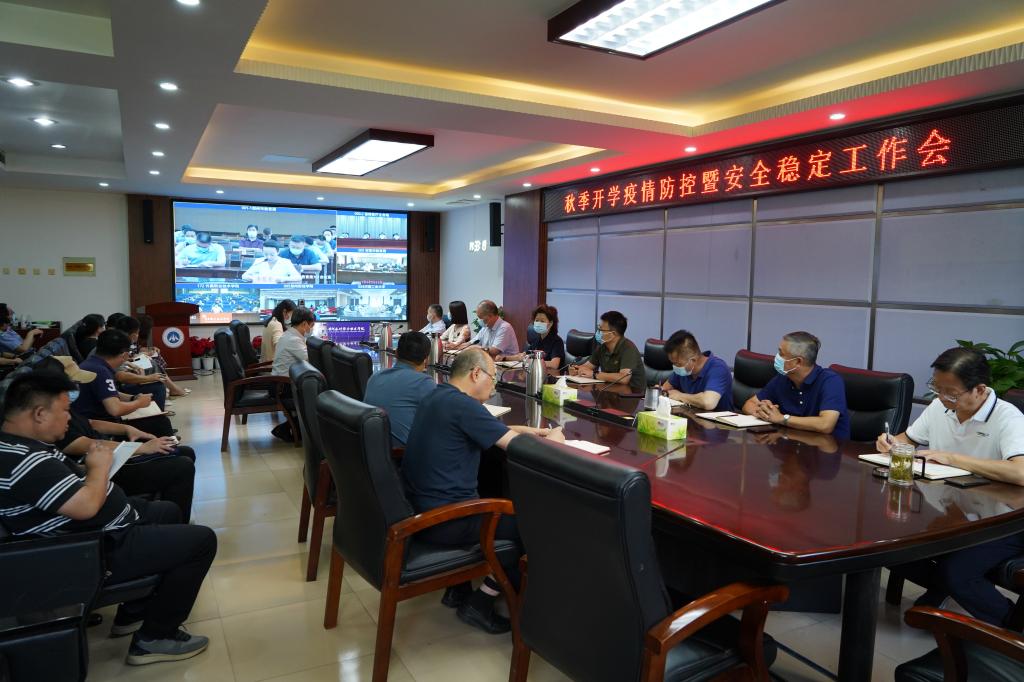 为确保平安开学,开学平安,8月24日,我校在行政楼第一会议室召开秋季开学疫情防控暨安全稳定工作会议。校党委书记周保平,党委副书记、校长胡昊,党委副书记、工会主席杨士恒,党委副书记刘卫锋,副校长焦爱萍、刘玉宾、刘守义,纪委书记朱焕立出席会议,疫情防控各专班负责人参加会议。会议由周保平主持。