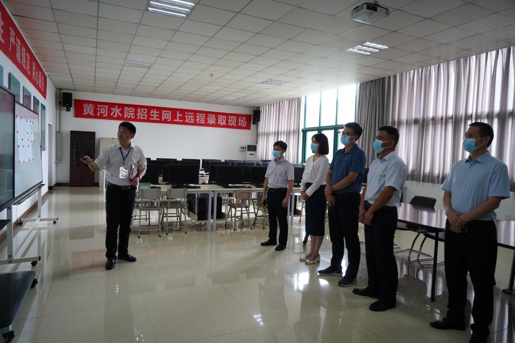 8月11日,校长胡昊带领副校长焦爱萍、菅浩然,纪委书记朱焕立,党政办公室、纪委、对外联络与合作处等部门负责人到招生录取工作现场,检查指导招生录取工作,亲切慰问奋战在一线的工作人员,了解学校招生录取情况。