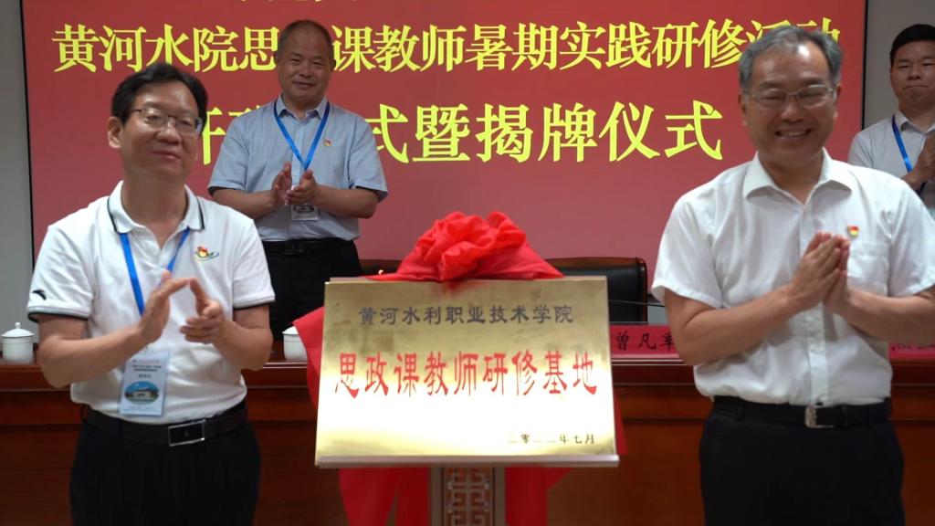 7月8日,研修班举行开班仪式暨揭牌仪式。杨士恒作动员讲话,大别山干部学院党委委员、副院长曾凡军出席,仪式由焦红强主持。杨士恒在动员讲话中指出,思想政治理论课是落实立德树人根本任务的关键课程,思政课教师责任重大。本次研修旨在感悟大别山精神、传承红色基因、弘扬红色传统,加强思政课教师队伍建设,推进学校思政课守正创新。教师们要切实将学习所得和教学实际相结合,不断丰富教学案例,努力改进教学方法,持续增强思政课的感染力和吸引力。刘守义同志与曾凡军同志签署党性教育培训合作协议并共同为“黄河水利职业技术学院教师研修基地”揭牌。