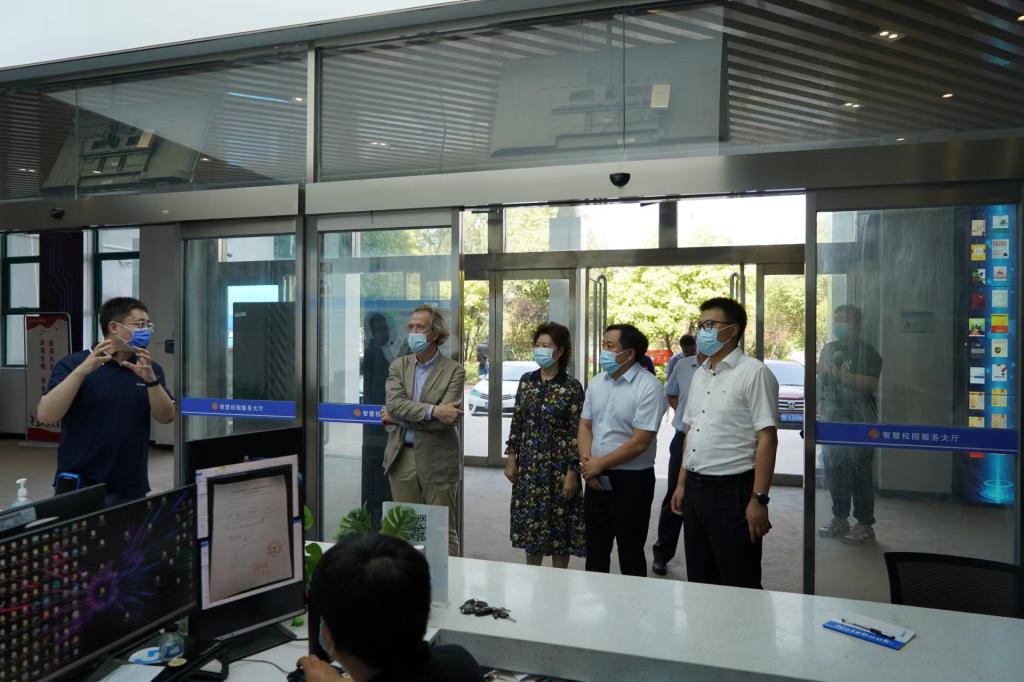顾博维尔一行还参观了我校“足迹”文化景观,调研了环境工程学院、测绘工程学院、水利工程学院实训场馆,考察了智慧校园服务大厅、鲲鹏山实训基地。(摄影:党委宣传部 王红)
