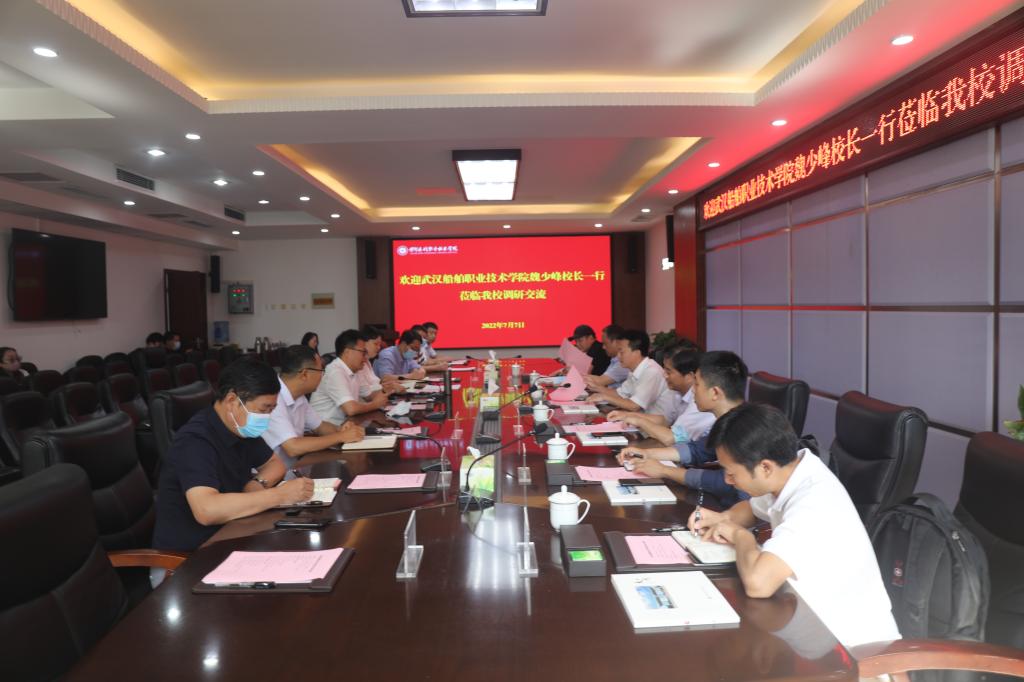 7月7日上午,武汉船舶职业技术学院校长魏少峰一行7人来我校考察交流“双高计划”建设、智能制造实训室软硬件建设等相关工作。校党委副书记、校长胡昊出席座谈会,党政办公室、教务处、“双高建设”办公室、国有资产管理处、机械工程学院等部门负责人参会。