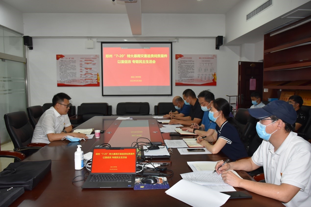 5月30日,测绘工程学院领导班子召开郑州“7·20”特大暴雨灾害追责问责案件以案促改专题民主生活会,校长胡昊全程参加并指导会议。学院全体党政领导班子成员参会,会议由院长陈琳主持。