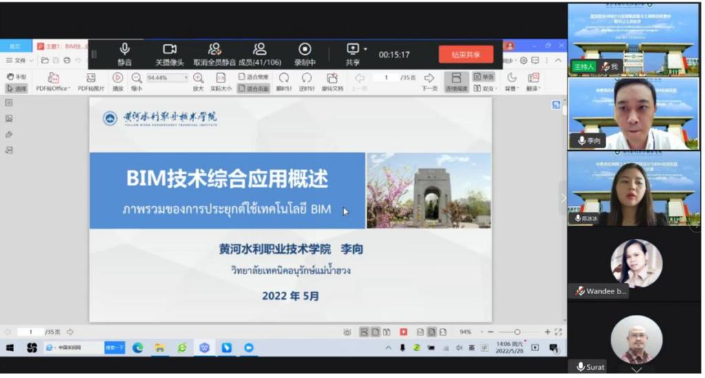 5月28日,我校与泰国职业教育委员会办公室联合举办了建筑工程技术专业泰国高校教师线上培训。来自泰国汶干职业学院、清迈职业学院、南邦理工学院等高职院校的80余名教师参加了此次培训。