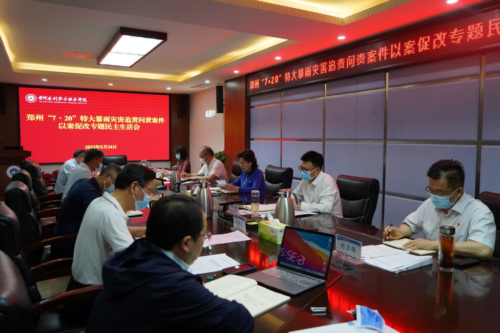 5月24日,我校领导班子在行政楼第一会议室召开“7·20”特大暴雨灾害追责问责案件以案促改专题民主生活会。校领导班子全体成员参加会议,党政办公室、党委组织部等部门负责人列席会议。