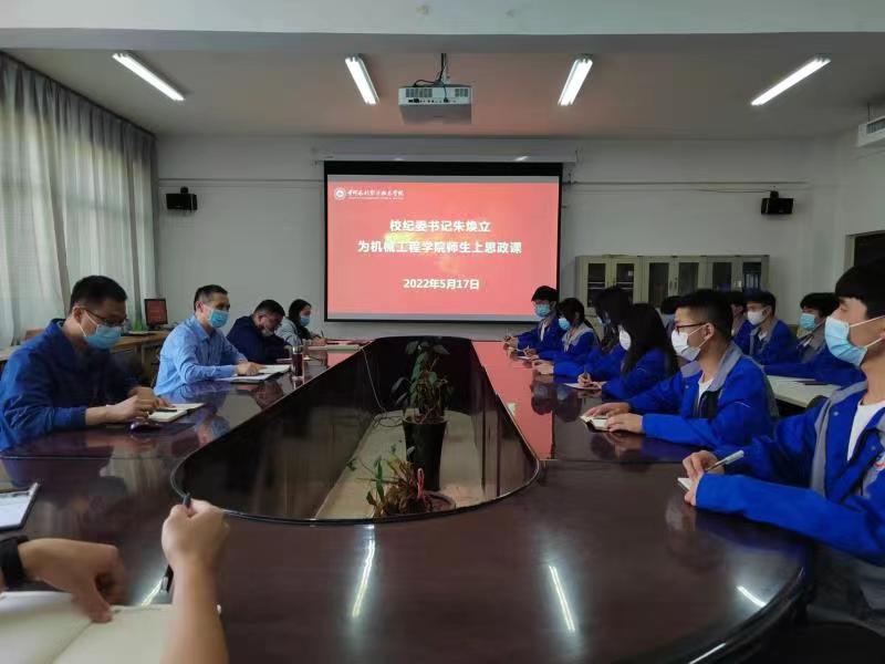 5月17日,校纪委书记朱焕立在5号实训馆211室,以“坚定信念 紧跟党走 不负韶华”为题,为机械工程学院师生党员代表上了一堂富有教育意义的思政课。机械工程学院师生党员代表30余人共同聆听了思政课。