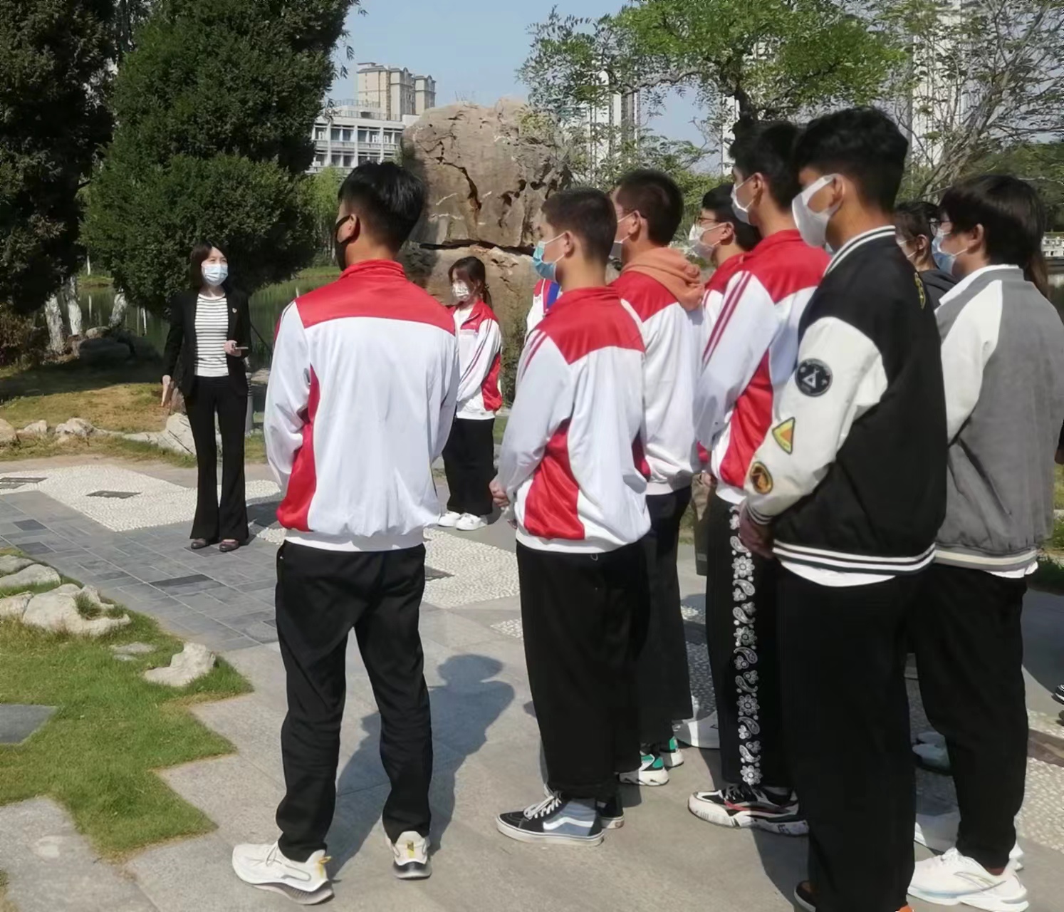 在校园“足迹”景观,焦爱萍带领大家共同回顾了我校90余年深厚的办学历史、文化底蕴和“治黄河、兴水利、除水患,安定民生、建设国家”的初心使命。她指出,90多年来,学校始终植根水利,牢记治黄使命,形成了“黄河为魂、水利为根、工程为基、育人为本”的办学特色,培养了20万名高素质水利技术技能人才,为中国水利事业做出突出贡献。