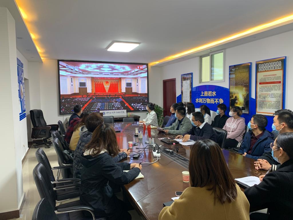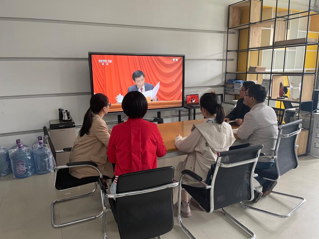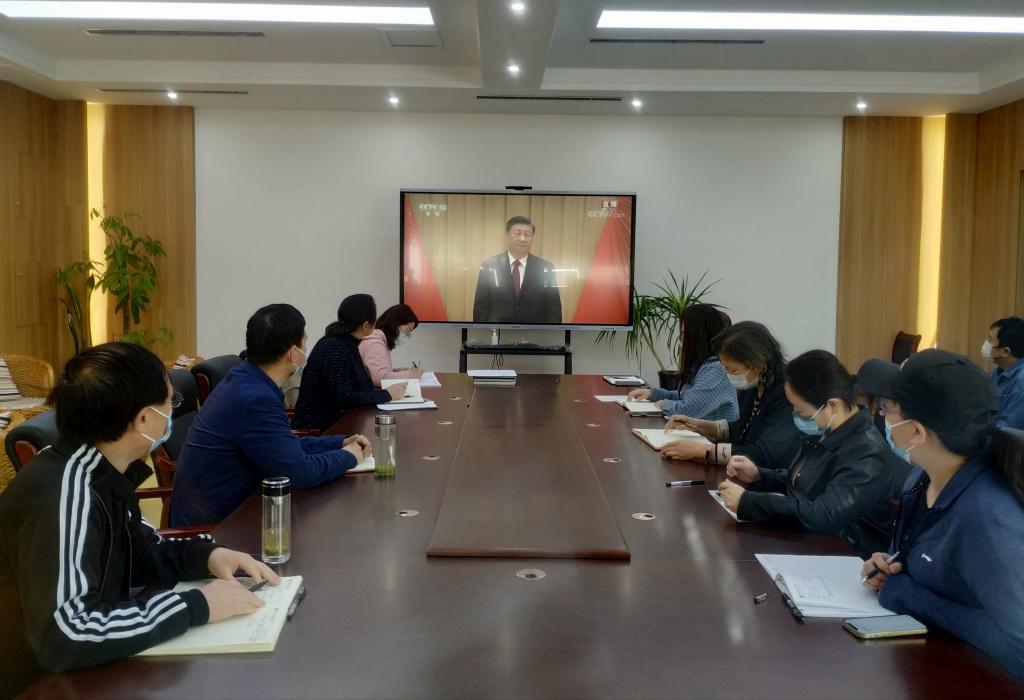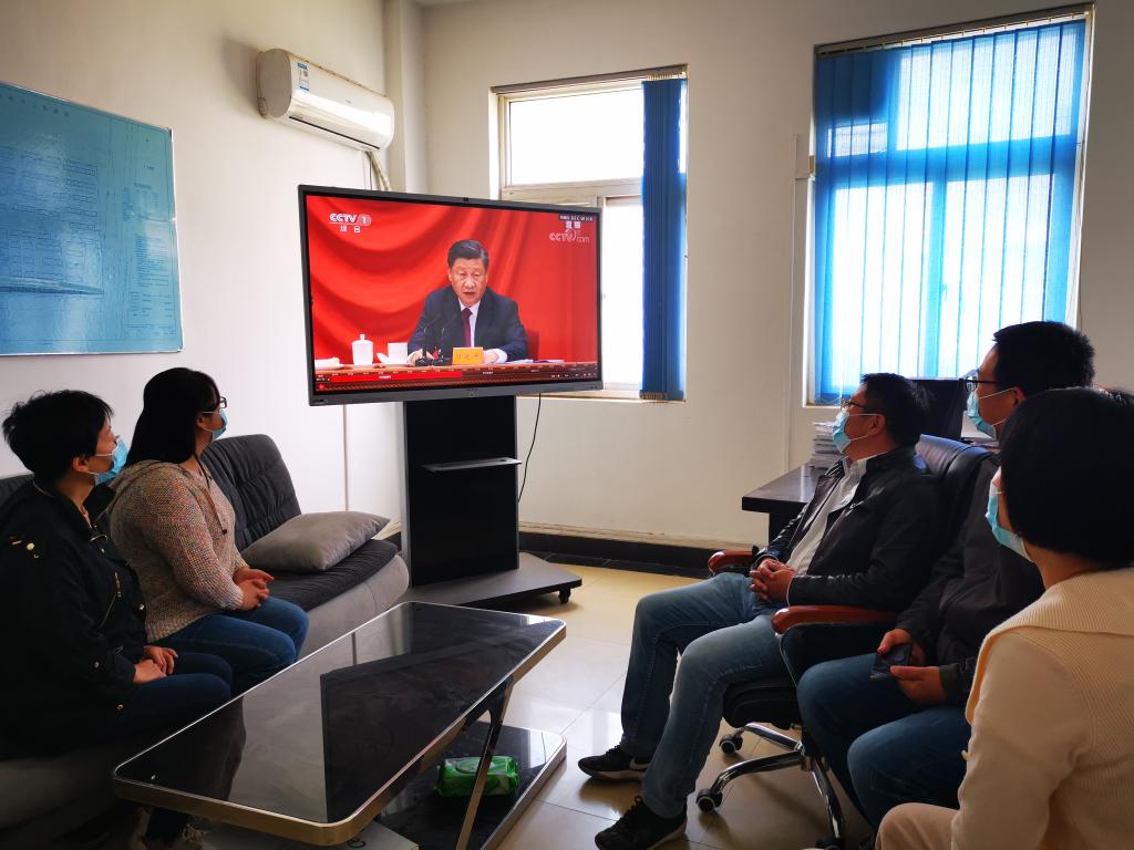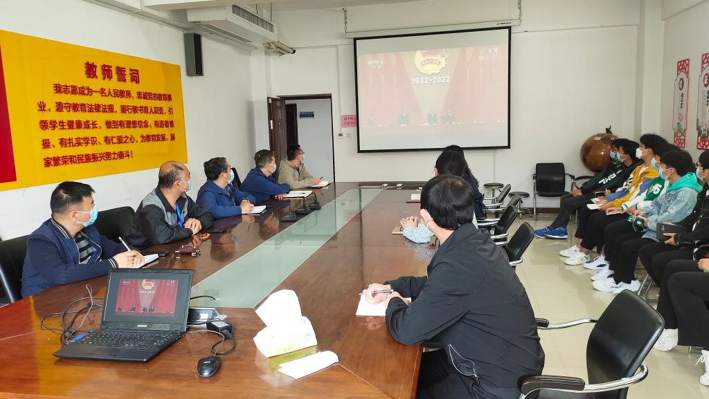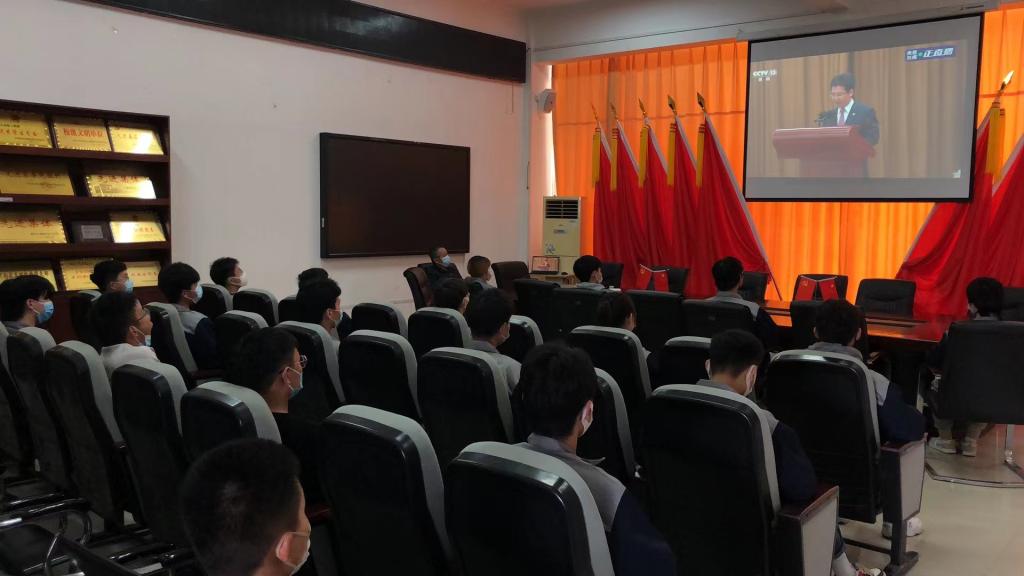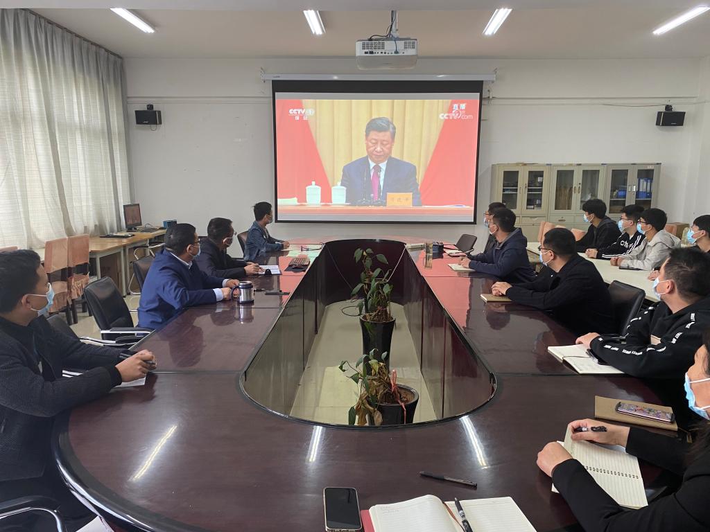 全体校领导及教师代表在行政楼第一会议室收看直播