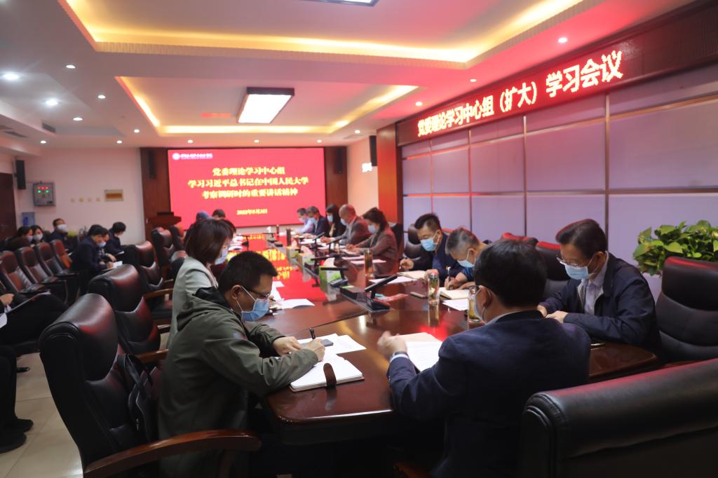 党委宣传部部长彭新立领学了习近平总书记在中国人民大学考察调研时的重要讲话。党委副书记、工会主席杨士恒,教师工作部部长马晓慧,水利工程学院院长雷恒,环境工程学院党总支书记高琼,马克思主义学院直属党支部书记焦红强分别结合自身工作实际交流了学习体会。(摄影:党委宣传部 郝迪婧)