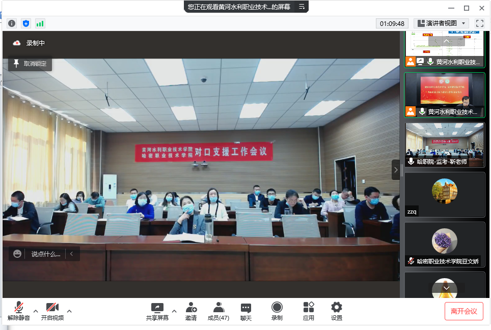 为充分用好我校“双高计划”A档建设单位优势,全面推进对口支援的哈密职业技术学院教学诊断与改进工作, 4月6日至4月15日,我校为哈密职业技术学院开展了内部质量保证体系教学诊断与改进工作线上培训会。哈密职业技术学院校领导、各部门负责人、各专业负责人、骨干教师、辅导员及班主任等共100余人参加了培训。