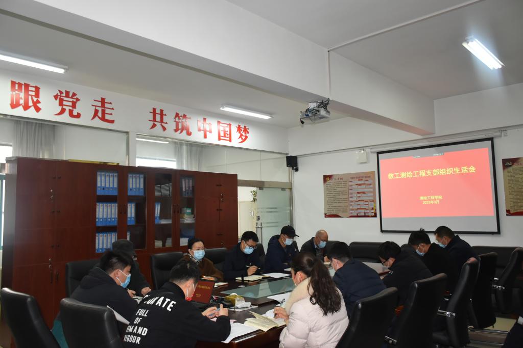 3月18日下午,校党委副书记、校长胡昊深入基层党组织,以普通党员身份参加测绘工程学院教工党支部2021年度组织生活会,并结合自身学习和工作实际,与支部党员开展了检视、剖析、批评和自我批评。
