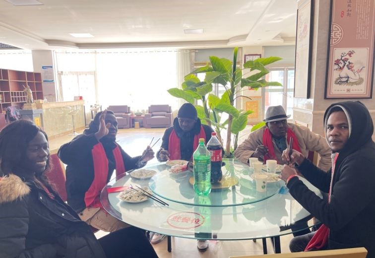 留学生向老师们送上新年祝福,对学校给予的关爱表示感谢,还热情地表演了豫剧选段《红灯记》。他们的表演赢来了在场老师的阵阵掌声和夸赞。对外联络与合作处和国际教育学院的老师们陪同留学生共进午餐。大家围坐在一起,聊着家常,品尝着热气腾腾的饺子,脸上洋溢着灿烂的笑容,气氛非常温馨。他们表示虽然身处异乡,但感受到了过年的欢乐,疫情期间留在中国、留在黄河水院倍感温暖和幸福,一定会牢记嘱托,遵守疫情防控工作要求,好好学习,度过一个健康、安全、有意义的寒假。(供图:对外联络与合作处 国际教育学院)