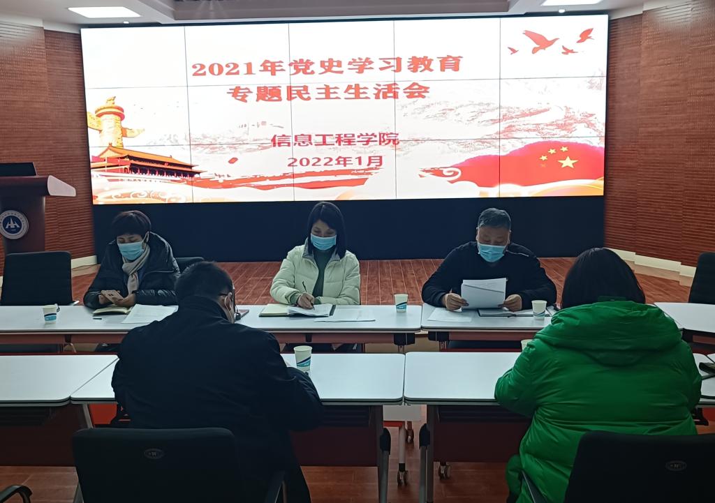 1月6日按照“党史学习教育”主题教育方案的实施要求,信息工程学院党政领导班子在四号实训楼演播厅召开了“党史学习教育”专题民主生活会。副校长焦爱萍全程参加并作点评讲话。信息工程学院党总支书记罗朝峰、院长丁爱萍、党总支副书记李晓娟、副院长曾赟、办公室主任徐博文、纪检员徐鹏及数媒教研室主任姜锐参会。会议由罗朝峰主持。