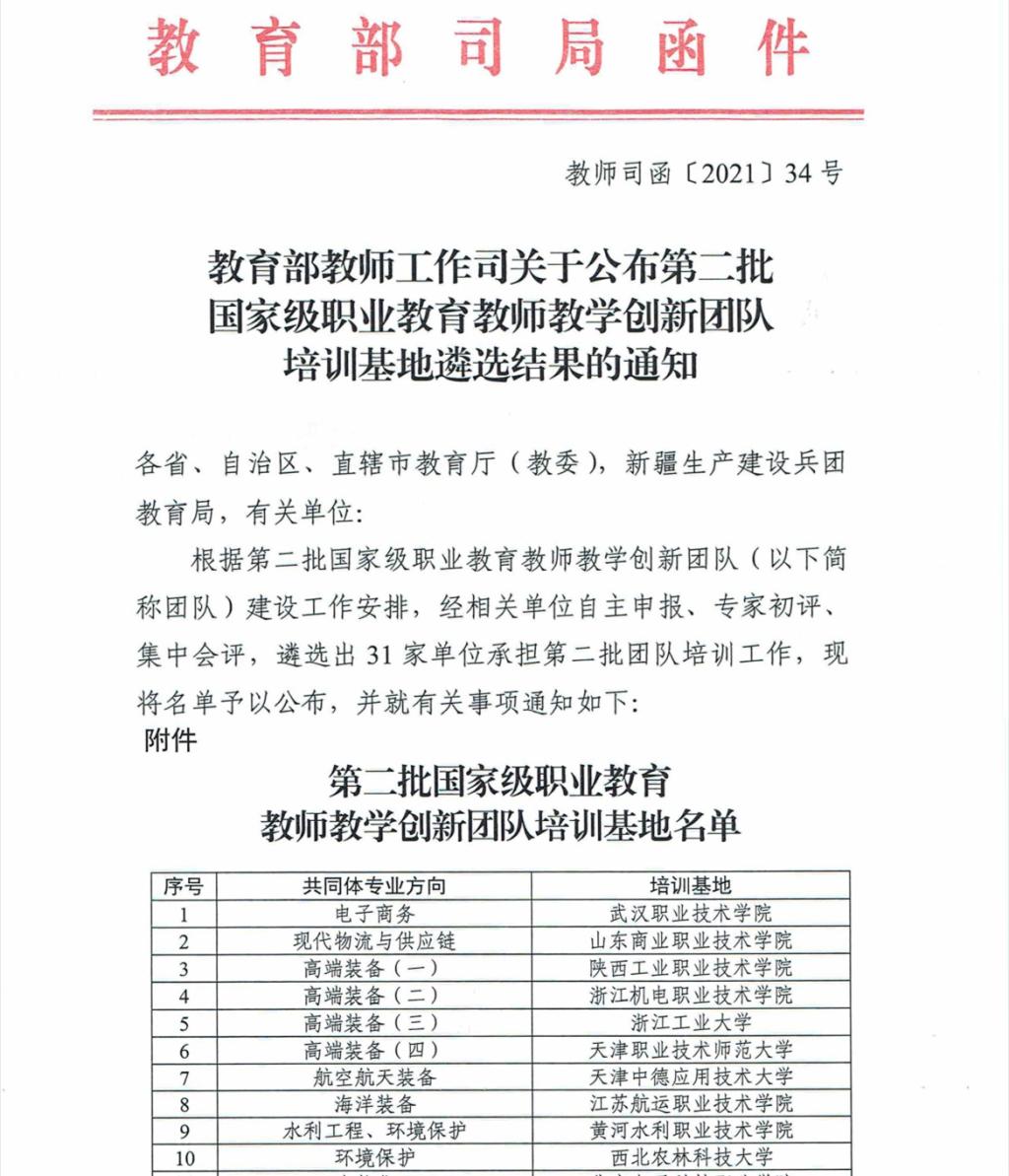 近日,从教育部获悉,由我校牵头主持,联合中国水利水电科学研究院、黄河水利科学研究院水土保持研究所、三门峡黄河明珠(集团)有限公司、焦裕禄干部学院等单位共同申报的第二批国家级职业教育教师教学创新团队培训基地获得批复。