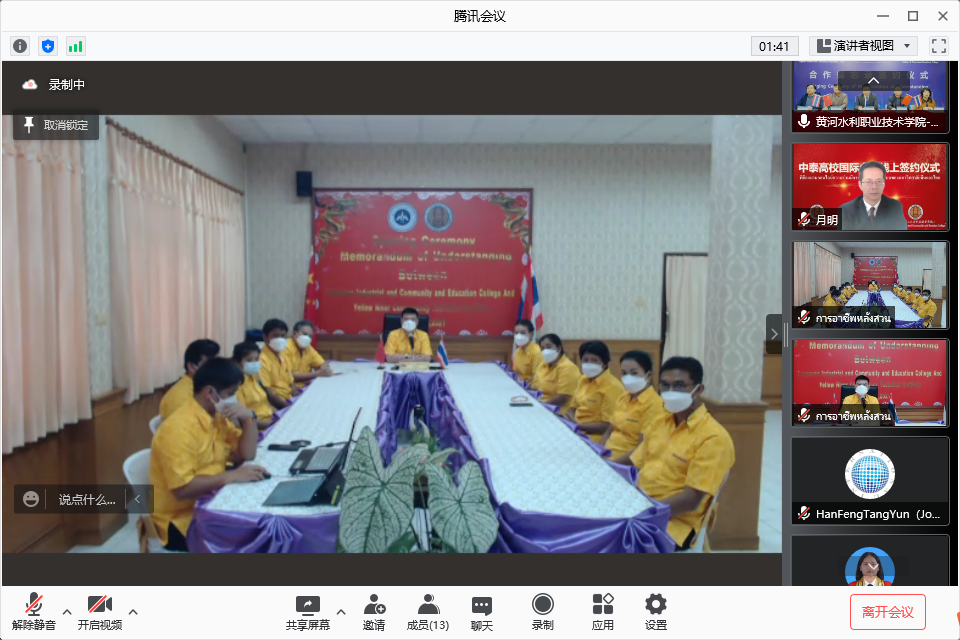 12月2日上午,我校与泰国那空西塔玛拉职业学院及廊双工业与社区教育学院合作备忘录签约仪式在线上举行。泰国职业教育委员会办公室主任楚恩吉特·奥克土恩、那空西塔玛拉职业学院校长萨彦·撒恩苏瑞彦、廊双工业与社区教育学院校长帕瑞斯特·沃特猜博恩、我校校长胡昊出席签约仪式。对外联络与合作处、教务处、国际教育学院等部门负责人参会。