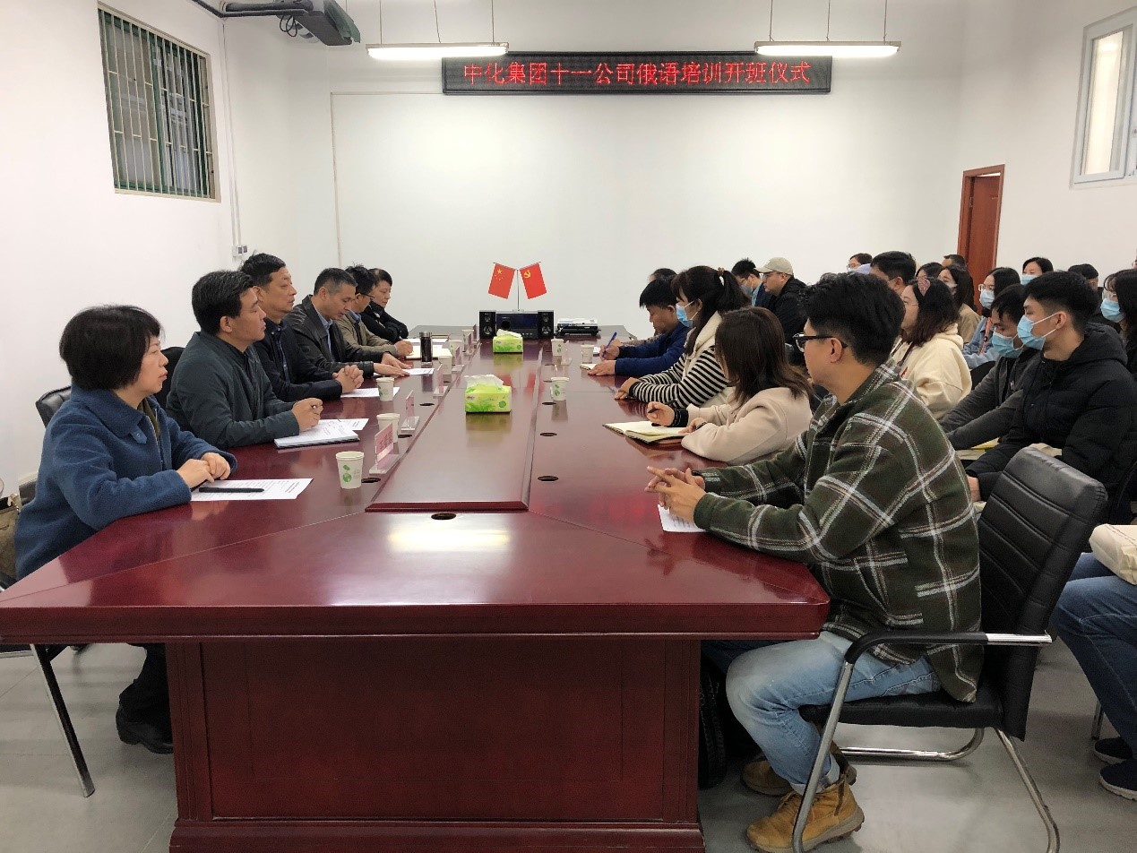 10月18日上午,由国际教育学院承办的中国化学工程第十一建设有限公司工程项目管理人员俄语强化培训班开班仪式在教学楼7408顺利举行。公司副总经理白涛、人力资源部副部长赵广明、专员李楠,学校纪委书记朱焕立、国教院领导班子、任课教师和培训学员参加开班仪式。