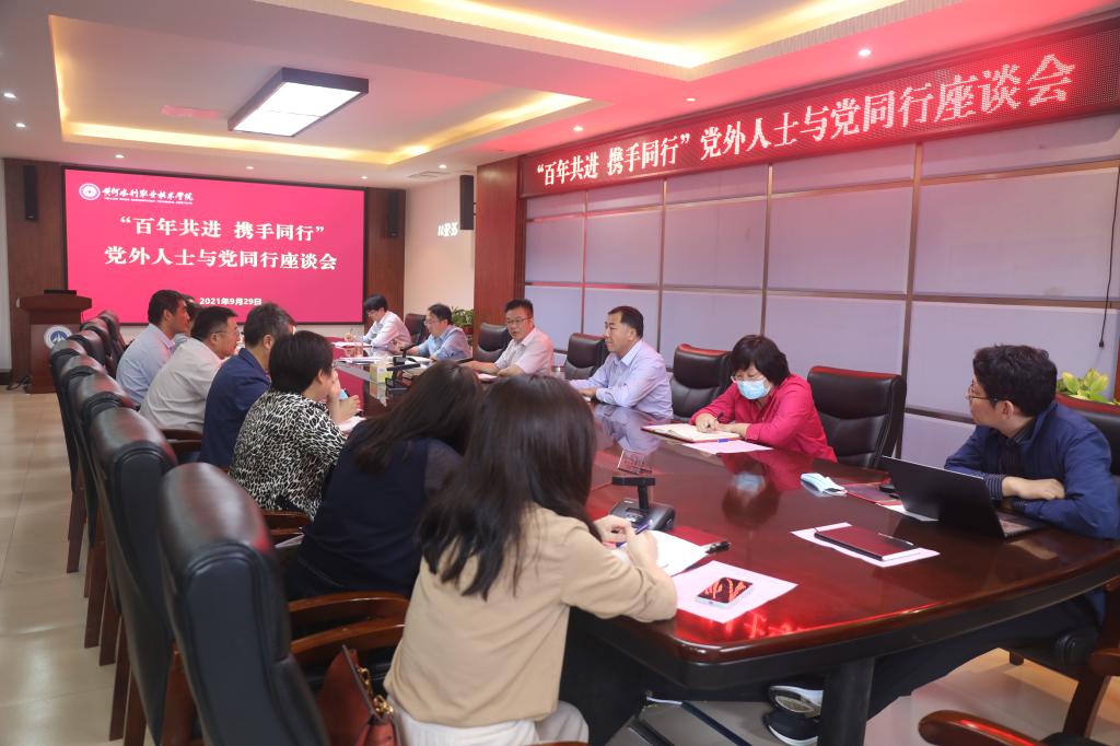 9月29日上午,我校在行政楼第一会议室召开“百年共进 携手同行”党外人士与党同行座谈会,校党委副书记刘卫锋出席会议,党委组织部(统战部)、党委宣传部、教师工作部、科技处等部门负责人及党外人士代表参加会议。会议由党委组织部部长周志琦主持。