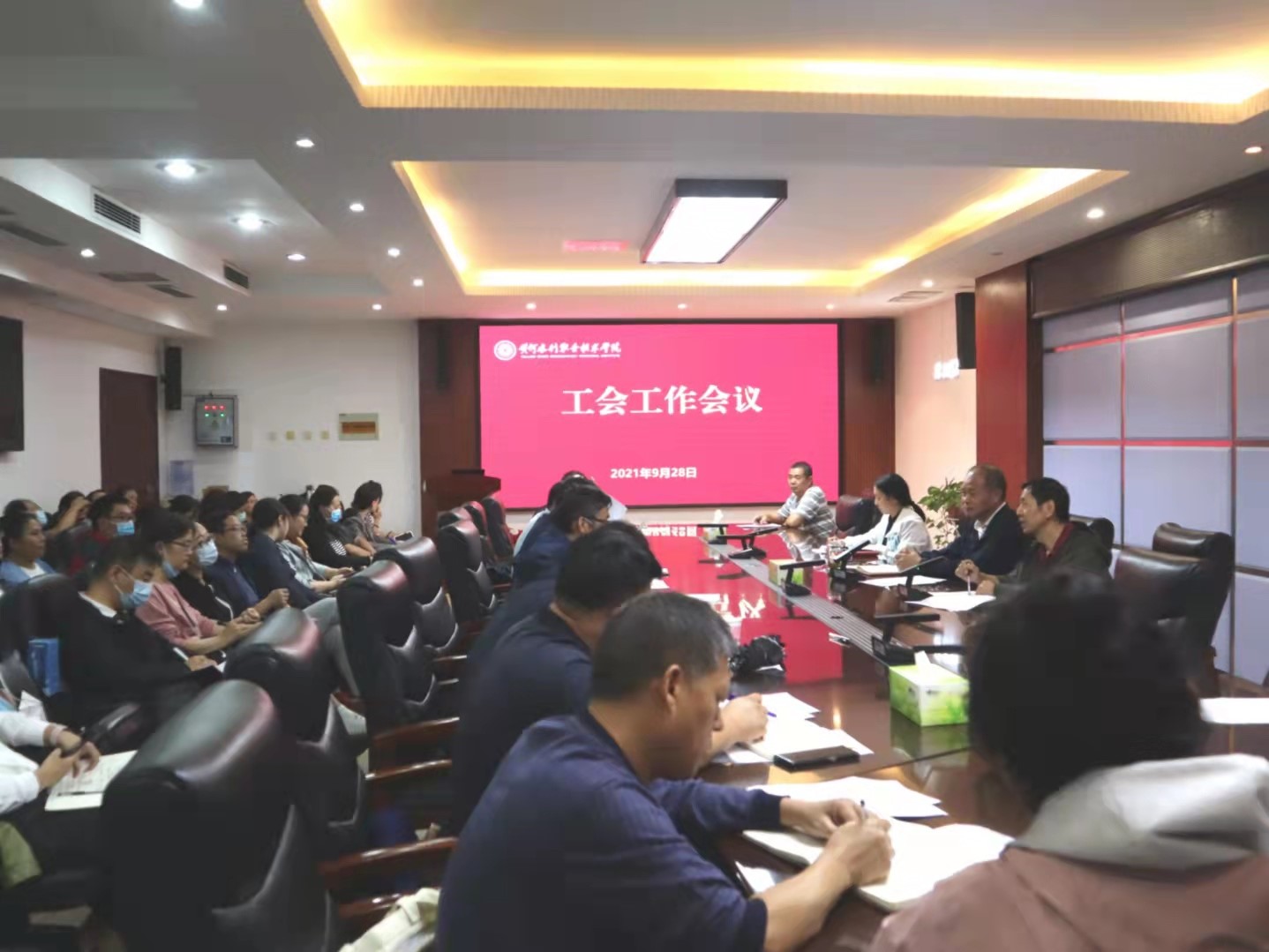 9月28日下午,在行政楼第一会议室召开我校2021年新学期工会工作会议,校党委副书记、工会主席杨士恒出席会议,全校各分工会主席、女工委员、组织宣传委员等参会。会议由校工会副主席李文丰主持。