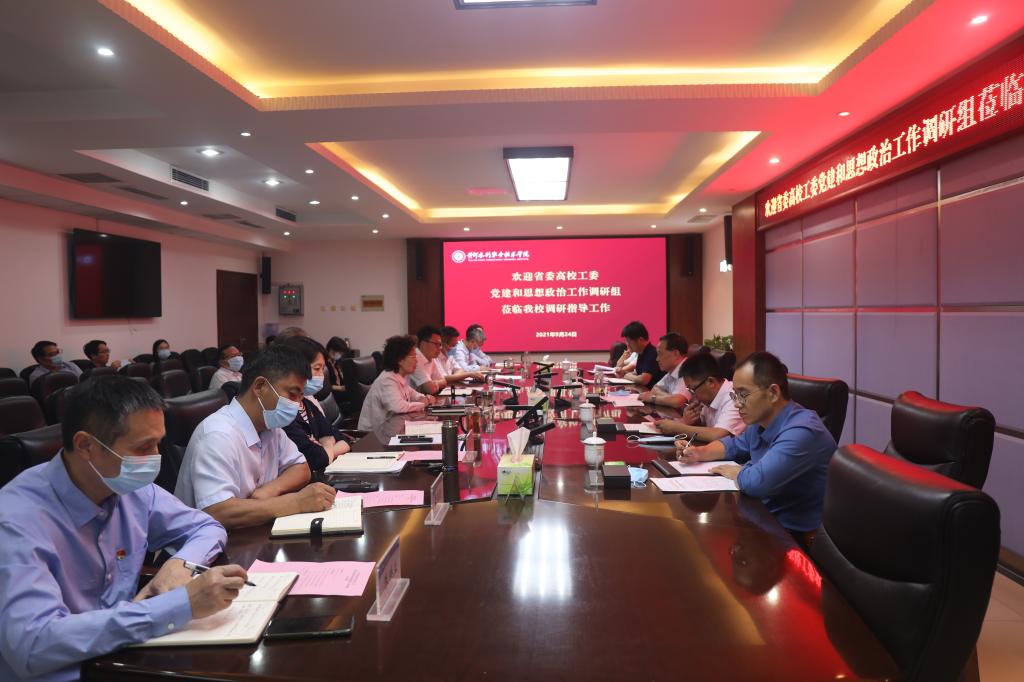 9月24日下午,由省委高校工委特约党建组织员郭正让任组长的调研组一行5人到校进行党的建设与思想政治工作调研。调研工作汇报会在行政楼第一会议室举行。校领导周保平、胡昊、杨士恒、刘卫锋、焦爱萍、刘玉宾、菅浩然、刘守义、朱焕立及相关部门负责人陪同调研。