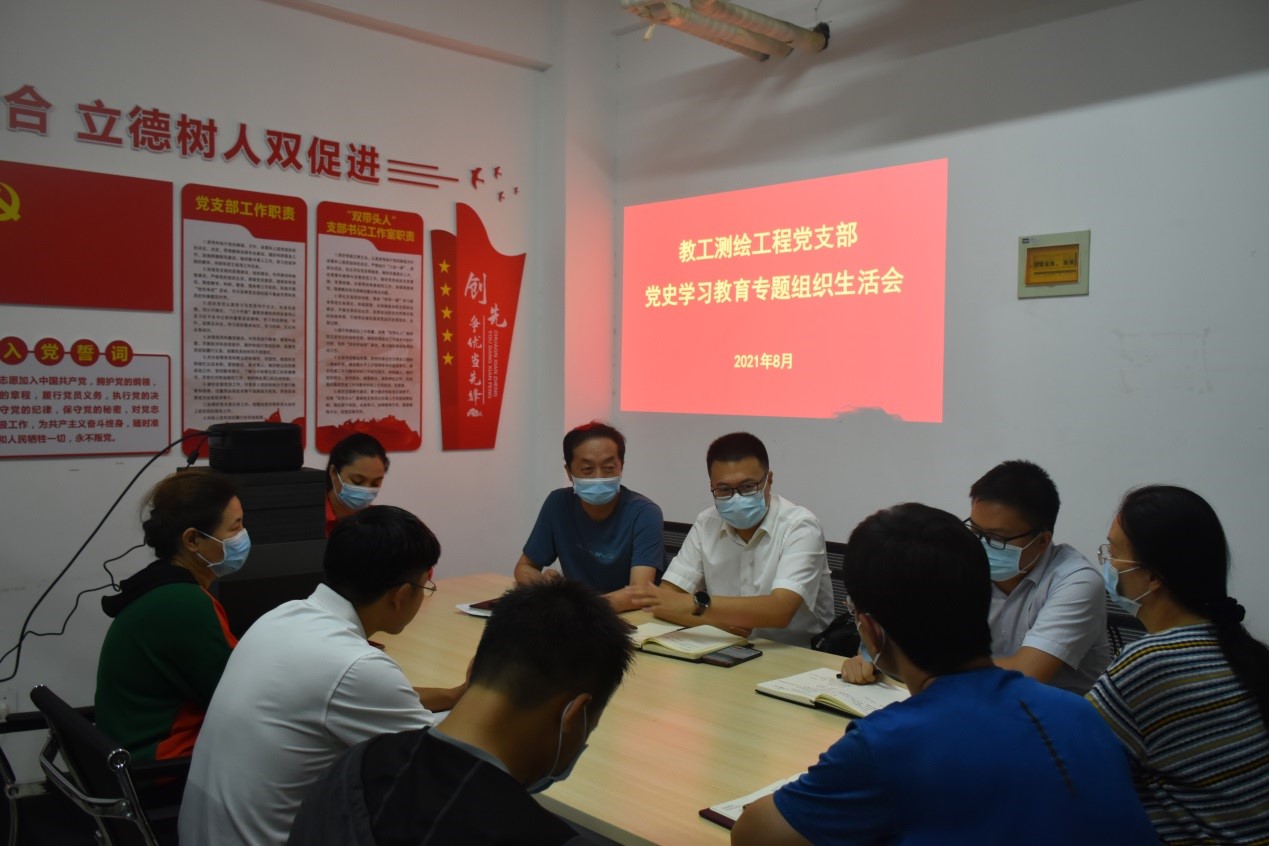 8月26日,校长胡昊以普通党员身份参加教工测绘工程党支部党史学习教育专题组织生活会,与支部党员一起围绕“学党史、悟思想、办实事、开新局”主题和党史学习教育的要求,检视学习教育成效,交流学习体会,查找差距不足。教工测绘工程党支部全体党员参加会议。