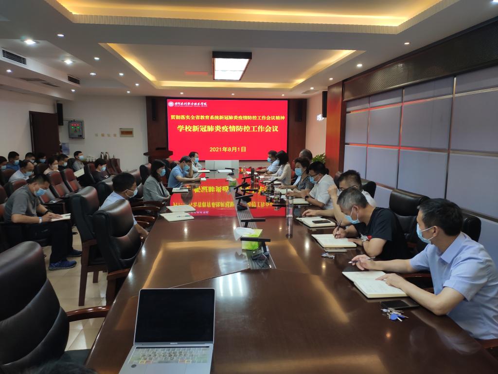 8月1日中午,学校在行政楼第一会议室召开专门会议,传达全省教育系统疫情防控会议精神,部署学校疫情防控工作。校领导周保平、胡昊、杨士恒、刘卫锋、焦爱萍、刘玉宾、菅浩然、朱焕立出席会议,各疫情防控专班、学院负责人参加会议。