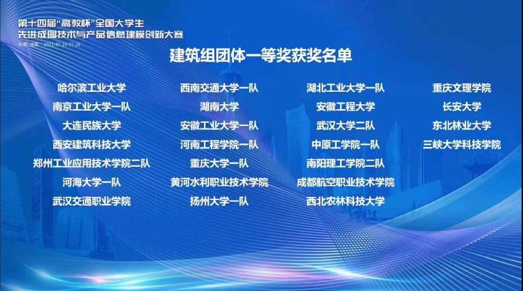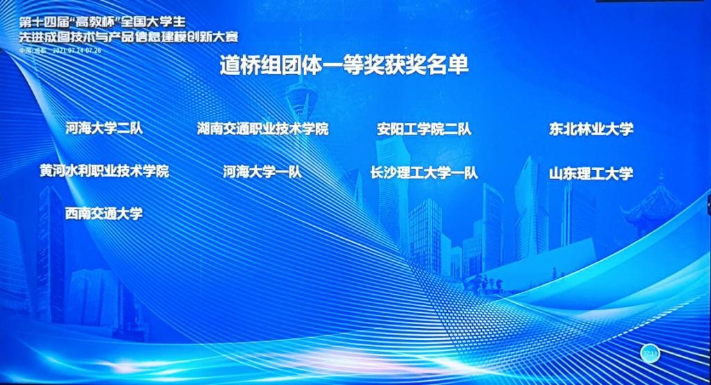 7月24日-26日,第十四届“高教杯”全国大学生先进成图技术与产品信息建模创新大赛在西南交通大学成功举办。我校水利工程学院、土木与交通工程学院、机械工程学院共派出6支代表队参加大赛,获得团体一等奖3项、团体二等奖1项、团体三等奖1项,机械类3D打印一等奖。其中水利工程学院获得的水利类、建筑类2项类别的团体一等奖;土木与交通工程学院获得的道桥类团体一等奖。这是我校第12次获得水利类赛项的团体一等奖。