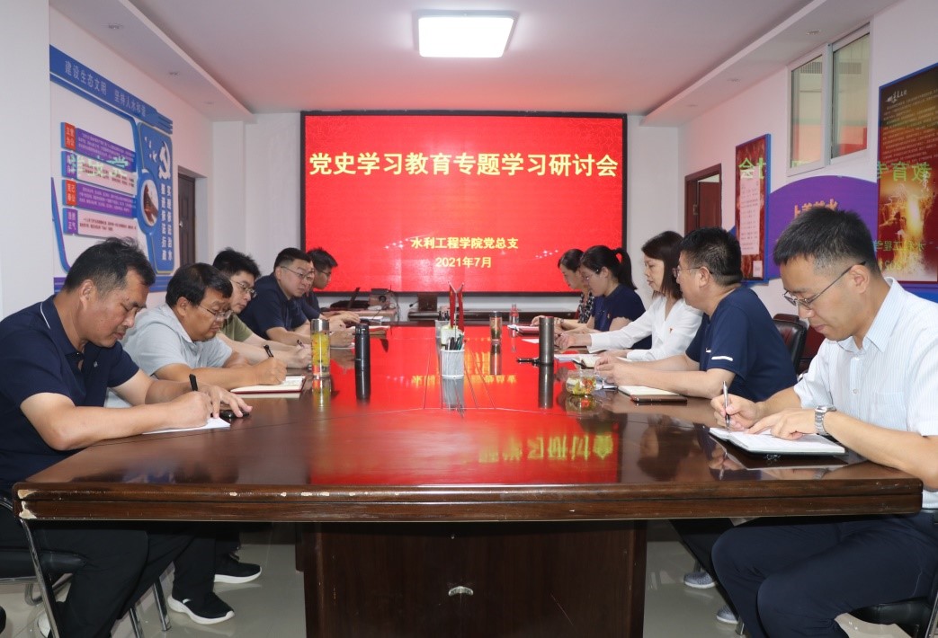 7月25日,水利工程学院党总支举行党史学习教育专题研讨会。副校长焦爱萍出席会议,水利工程学院党总支书记孙天星、院长陶永霞以及各党支部书记、教师代表等参加研讨会。会议由孙天星主持。