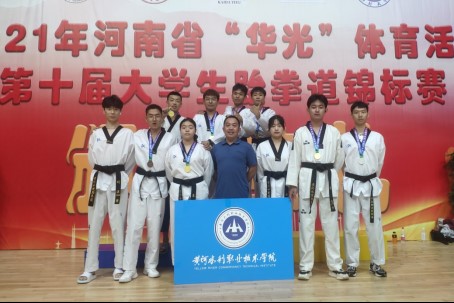 河南省第十届大学生跆拳道锦标赛于7月16日在鹤壁职业技术学院胜利举行,我校跆拳道队共派出11名运动员参加品势、竞技两个项目的角逐,斩获品势男子团体冠军,竞技男子团体亚军,男子58公斤级冠、亚军,男子80公斤级冠军,女子73公斤级冠军,男子高度击破冠军,男子68公斤级并列两个第三名,并荣获体育道德风尚奖。