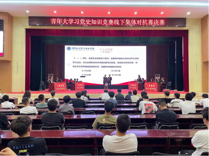 比赛中,现场气氛紧张而热烈,选手们冷静思考、沉着应答,展示出良好的精神风貌和扎实的理论功底,充分展现了我校党史学习教育成果。经过激烈角逐,电气工程学院“理想队”夺得第一名,水利工程学院“信仰队”获得第二名,商务与管理学院“青春队”与机械工学院“筑梦队”分获三、四名。
