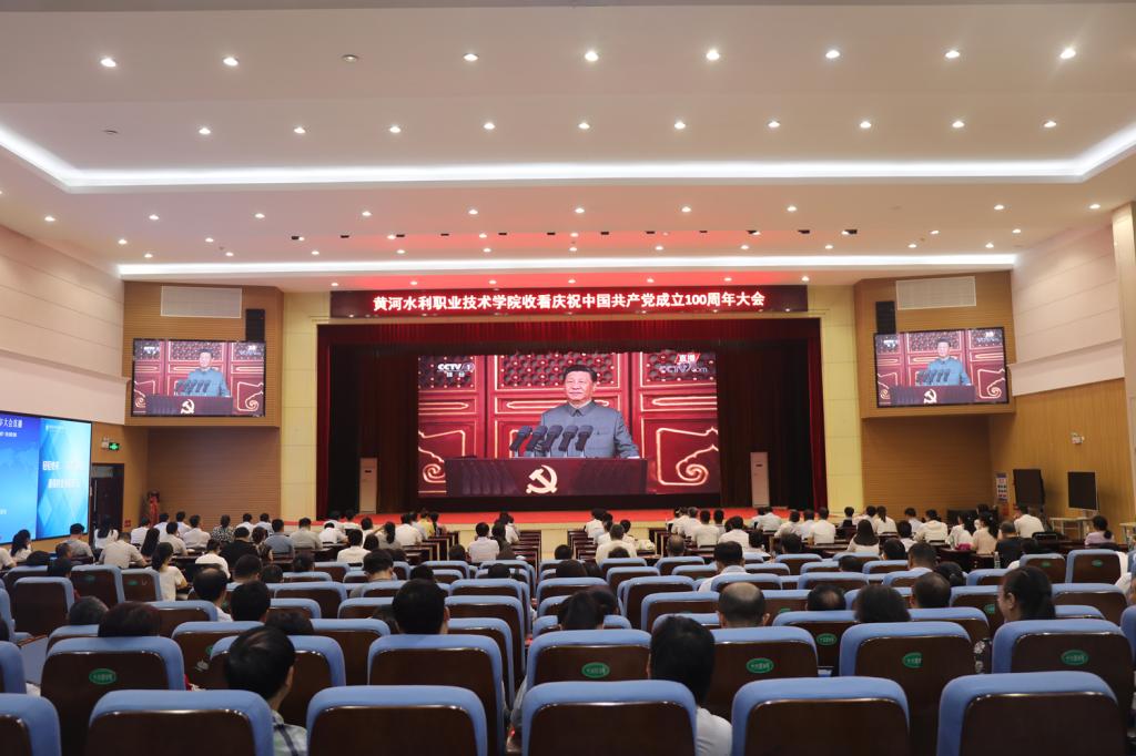 7月1日8时,庆祝中国共产党成立100周年大会在北京天安门广场隆重举行。黄河水利职业技术学院组织全校师生观看大会直播。全体校领导与党员师生代表300余人在学生活动中心集体观看了大会直播。习近平总书记的讲话回顾了中国共产党百年奋斗的光辉历程,展望了中华民族伟大复兴的光明前景。全校师生精神振奋、备受鼓舞,纷纷表示在中国共产党的坚强领导,不忘初心、砥砺前行,立足岗位建功立业,为实现中华民族伟大复兴的中国梦做出更大的贡献。