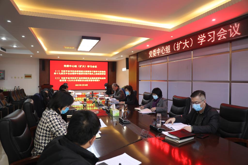 1月18日下午,校党委书记周保平主持召开校党委理论学习中心组(扩大)学习会,专题学习习近平总书记在省部级主要领导干部学习贯彻党的十九届五中全会精神专题研讨班开班式上的重要讲话和习近平总书记关于总体国家安全观的重要论述。校党委委员,党政办公室、纪委、学生工作部、保卫部、教务处、发展规划处等部门负责人,国际教育学院党总支书记参加学习。