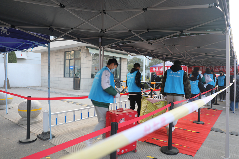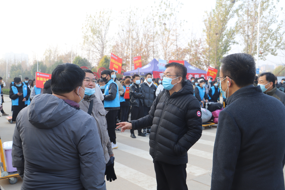 12月5日,是我校扩招学生报到的日子。早上8点,各学院、“小水滴”志愿服务队、报到工作各环节工作人员已准备就绪,迎接新生到来。党委副书记刘卫锋带领疫情防控各专项工作组负责人深入现场检查指导工作,慰问工作人员,热情迎接报到学生,报到现场平稳有序。
