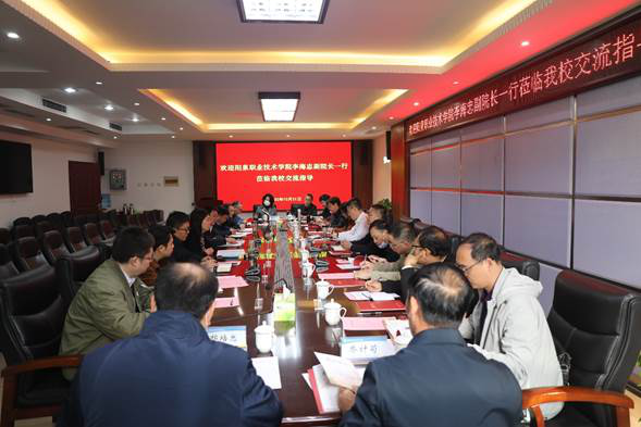 10月21日上午,阳泉职业技术学院副院长李海忠一行14人来我校考察交流信息化管理和实验实训教学工作。我校副校长焦爱萍出席座谈会,党政办公室、教务处(质量管理办公室)、对外联络合作处、信息化管理办公室、商务与管理学院、信息工程学院等部门主要负责人参会。