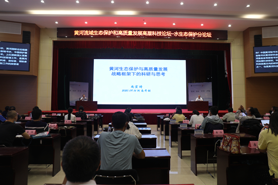 为进一步深入贯彻落实习近平总书记在“黄河流域生态保护和高质量发展座谈会”上的讲话精神,促进黄河流域生态保护和高质量发展重大国家战略实施,9月16日,由中国科学技术协会主办,河南省科学技术协会、水利部黄河水利委员会等承办的黄河流域生态保护和高质量发展高层科技论坛在河南隆重举行,我校受大会组委会委托,承办“水生态保护”主题论坛,邀请黄河水利委员会原国科局局长尚宏琦教授和黄河水文化专家侯全亮研究员做主旨报告。主题论坛采用线下会议和线上直播的形式,学校各教学院部的负责人、教师代表等100余人参加了线下会议,其余教师通过网络直播参会。论坛由副校长杨士恒主持。