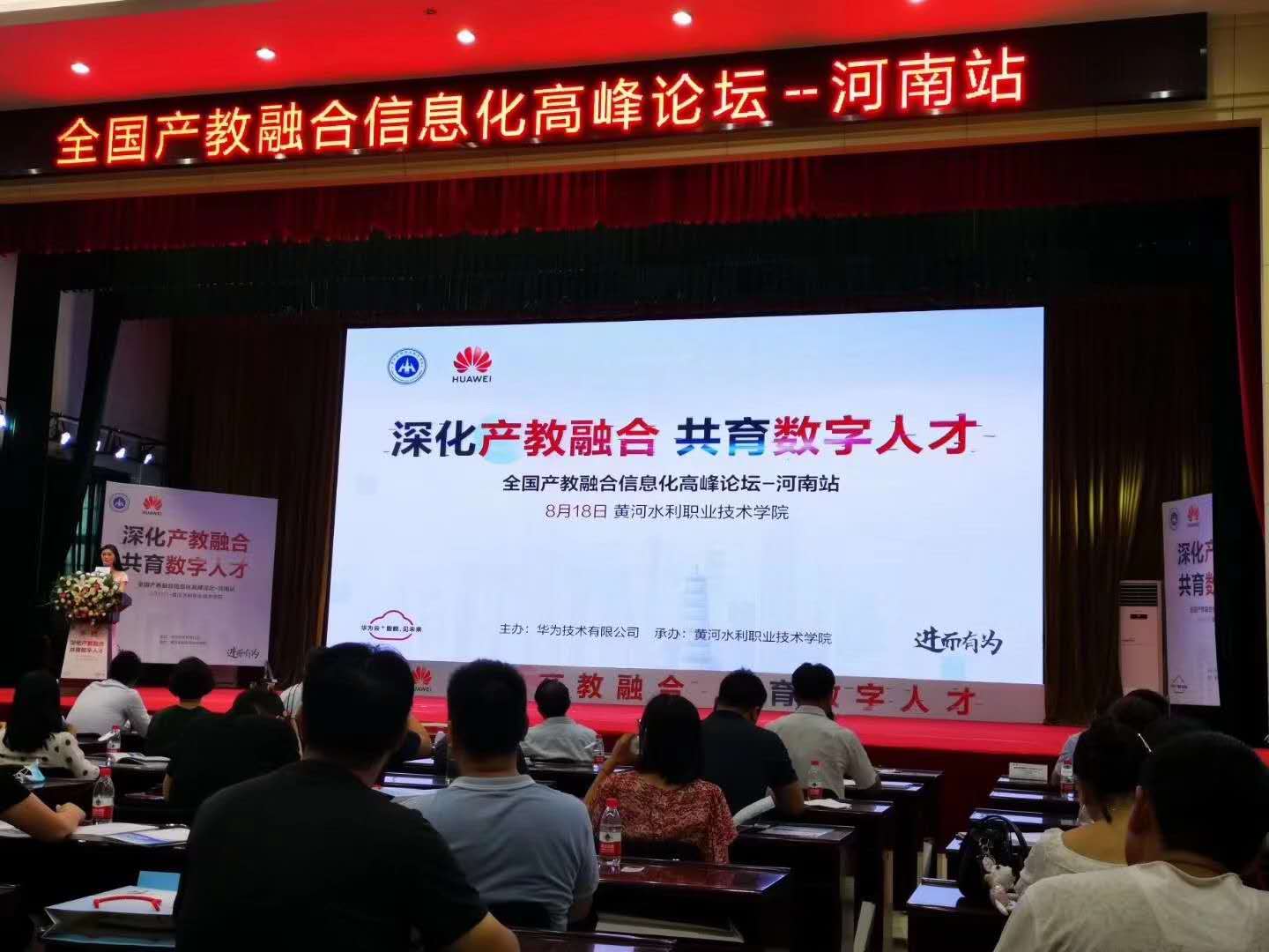 为进一步贯彻落实《国家职业教育改革实施方案》,深化产教融合,推进校企合作,共育数字人才,8月18日,由华为技术有限公司主办,我校承办的2020全国产教融合信息化高峰论坛(河南站)在我校学生活动中心举办。此次高峰论坛以“深化产教融合,共育数字人才”为主题,围绕“高职信息化建设应用与实践”“产教融合数字人才培育”“ICT产业学院发展之路”等方面,分享优秀典型院校经验,交流与探讨创新技术,推动职业教育及高水平应用型数字人才的培养。共有包括我校在内的全省40多所兄弟院校的校领导、二级学院领导和专任教师参加论坛。