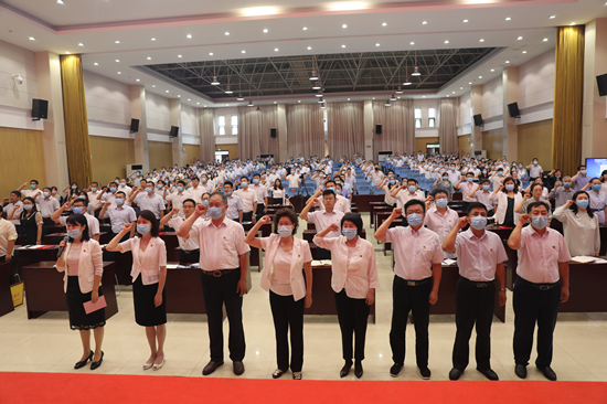 6月30日上午,我校在学生活动中心报告厅隆重举行庆祝中国共产党成立99周年暨“七一”表彰大会,校领导周保平、祝玉华、杨士恒、刘卫锋、焦爱萍、菅浩然以及党委委员谷献晖、于兆国等出席大会,全体科级及以上干部代表、离退休党员代表、党外人士代表、教师代表、学生党员代表等参加现场会议,其他教职工参加视频会议。大会由党委副书记刘卫锋主持。会议在全体党员高唱《国歌》中拉开序幕。