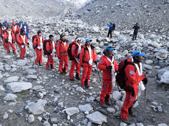 5月27日11时,2020珠峰高程测量登山队8名攻顶队员克服重重困难,成功从北坡登上珠穆朗玛峰峰顶,并顺利完成峰顶测量任务。8名队员在峰顶停留150分钟,创造了中国人在珠峰峰顶停留时长的新纪录。期间,队员们完成了峰顶测量觇标的安置、GNSS定位测量、雪深测量、重力测量等多项测量工作。