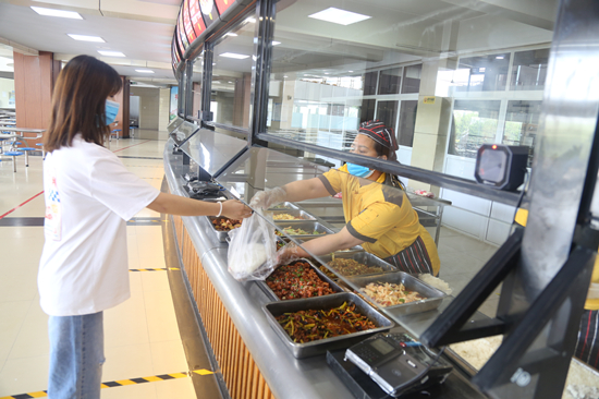学生在餐厅领餐就餐