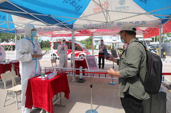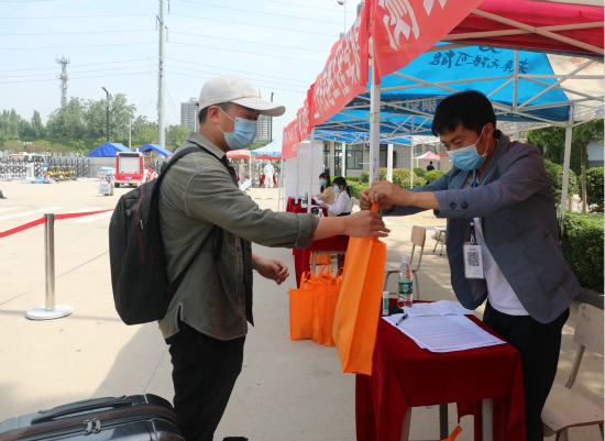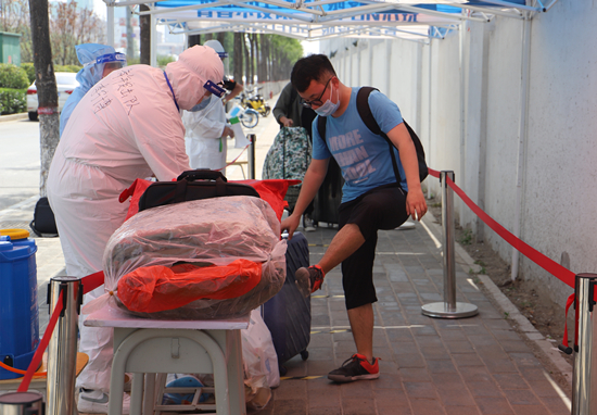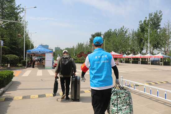 疫情防控青年突击队成员为返校学生搬运行李