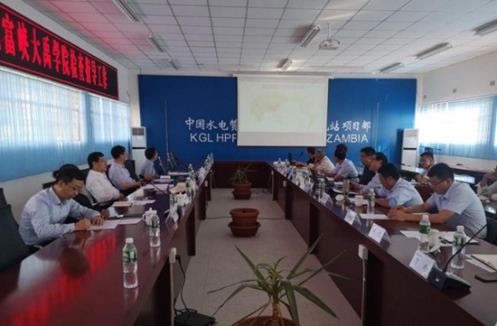 当地时间12月11日,水利部人事司司长侯京民在水利部人才与培训处处长唐晓虎,农水水电司副调研员张翔,办公厅主任科员刘磊,国际小水电中心副处长董国锋的陪同下,莅临我校赞比亚大禹学院,就国际化水利人才培养、大禹学院未来发展进行调研。水电十一局非洲分局党委书记张涛锋,我校党委副书记、工会主席王卫东陪同调研。