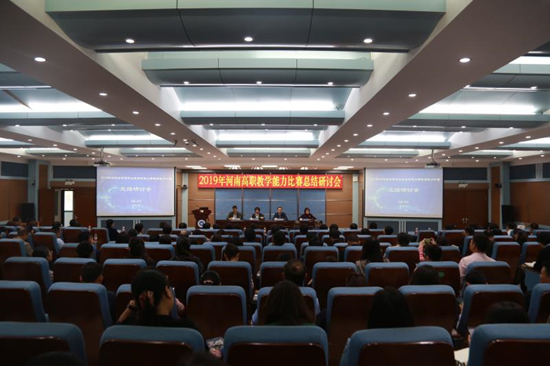 10月11日,2019年河南省高等职业教育技能大赛教学能力比赛总结研讨会在我校3号实训馆学术报告厅召开。教育厅职成处副处长史文生,我校党委副书记、校长祝玉华出席会议。省内66所高等职业学校教学副校长、教务处长、现场比赛教师、一等奖获得者等220余名代表参加会议。大会由我校副校长焦爱萍主持。