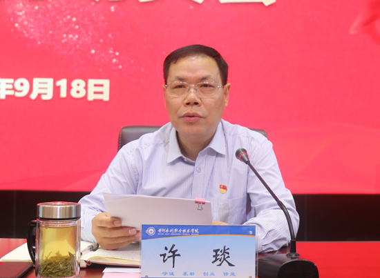 就我校如何落实好主题教育工作,许琰提出四点要求:一是提高政治站位,深刻认识开展主题教育的重大意义。开展“不忘初心、牢记使命”主题教育是党中央的重大决策部署、是当前和今后一段时间的重大政治任务、是激发办好人民满意职业教育的强大动力。通过主题教育,要把初心和使命变成党员干部锐意进取、开拓创新的精神,把握当前高职教育发展的良好契机,勇于变革、勇于创新,持续擦亮“四张名片”,加快建设“六个校园”,解决师生关切的实际问题,增强师生的获得感和幸福感。二是聚焦目标任务,准确把握主题教育的目标要求。主题教育的根本任务是深入学习贯彻习近平新时代中国特色社会主义思想,锤炼忠诚干净担当的政治品格,团结带领全国各族人民为实现中华民族伟大梦想共同奋斗。总要求是“守初心、担使命,找差距、抓落实”。具体目标是理论学习有收获、思想政治受洗礼、干事创业敢担当,为民服务解难题、清正廉洁作表率。要结合我校工作实际,聚焦现代职业教育“支撑国家战略、融入区域发展、服务产业升级”的时代重任,切实做到教育为民守初心、立德树人担使命、对标检视找差距、奋进有为抓落实,稳步推进“双高校”建设工作任务,在推动新一轮职业教育改革中做出更大贡献。三是周密部署安排,切实把主题教育引向深入。要把深入学习贯彻习近平新时代中国特色社会主义思想这一根本任务作为最突出的主线,将“学习教育、调查研究、检视问题、整改落实”贯穿主题教育全过程,做到在学习教育、检视问题中悟初心、守初心,在整改落实、解决问题中勇作为、践使命,确保主题教育取得预期效果。四是精心组织实施,确保主题教育高质量开展。各基层党组织要把抓好主题教育作为一项重要政治任务,严格按照中央部署和省委安排,扛牢政治责任、强化标准要求、做好统筹安排,加强组织领导,精心组织实施,标准要高,要求要严,措施要实,坚定“四个自信”,树牢“四个意识”,做到“两个维护”,以党的建设高质量推动学校事业发展高质量,谱写新时代中原更加出彩新篇章、书写教育“奋进之笔”展现新作为,以优异成绩迎接新中国成立70周年。