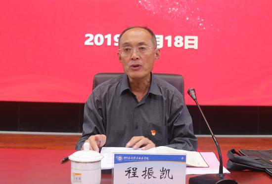 程振凯对我校党委高度重视、认真准备、精心谋划主题教育各项工作给予充分肯定。他强调,搞好第二批主题教育,对于用习近平新时代中国特色社会主义思想统一全党思想和行动,引导基层党员干部自觉增强“四个意识”、坚定“四个自信”、做到“两个维护”,深入贯彻落实党中央重大决策部署和习近平总书记重要指示批示,把党的十九大确定的目标任务落到实处,具有十分重要的意义。就进一步落实好主题教育的各项任务,程振凯提出六点要求:一是要提升政治站位。要增强搞好主题教育的政治责任感和使命感,以更加务实的作风和有效的举措抓紧抓实抓到位,确保主题教育取得实实在在的成效。二是要把握总体要求。坚持抓思想认识到位、抓检视问题到位、抓整改落实到位、抓组织领导到位,充分借鉴运用第一批主题教育好经验,结合学校实际,注重解决实际问题,注重开门搞教育,让广大师生切实感受到主题教育带来的新变化新成效。三是要突出重点对象。学校各级领导班子和班子成员是重点对象,县处级以上领导班子和领导干部是“关键少数”,要坚持走在前、作表率,以身作则,率先垂范,在理论学习上先学一步、学深一层,在检视剖析上正视问题、刀刃向内、深挖根源,在整改落实上主动担责、立行立改、真改实改,以更高标准、更严要求全面落实主题教育各项任务。四是要加强分类指导。坚持一切从实际出发,找准着力点和切入点,聚焦为党育人、为国育才,突出党的政治建设,紧扣立德树人的根本任务,开展学习、深入调研,着重解决学校工作存在的问题。结合学校实际,统筹把握校级领导班子、中层领导班子和教工党员、学生党员等不同特点,充分利用各种平台载体,扎实推进学校主题教育取得实实在在成效。五是要解决突出问题。要在深入学习、提高认识的同时,坚持问题导向,奔着问题去、盯着问题改,把问题找实、把根源挖深,把功夫下在解难题、抓落实上,要坚持发扬斗争精神,立行立改,上下联动,真刀真枪既解决思想上的问题又解决工作上的问题。六是要落实主体责任。学校各级党组织要切实扛起政治责任,加强领导指导,精心组织推动,把中央部署和省委要求落实到每个支部、每名党员,层层压实责任,履行“一岗双责”,力戒形式主义、官僚主义,以好的作风确保主题教育取得好的效果。