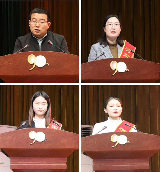 机械工程学院党总支书记王振强、武琳琳老师、信息工程学院网络技术1702团支部书记冯梦雨、艺术与设计学院学生申艳霞分别代表五四红旗团委、优秀团干部、五四红旗团支部、优秀团员发言。他们结合自身成长经历以及奋斗的历程,分享了青春故事,畅谈了工作学习中的心得体会和生活感悟。