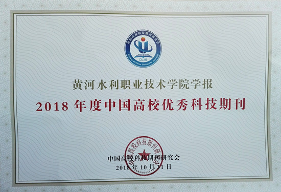 11月5日—6日,中国高校科技期刊研究会第22次年会在重庆召开,会议发布了2018年中国高校杰出•百佳•优秀科技期刊遴选结果,《黄河水利职业技术学院学报》获评2018年度中国高校优秀科技期刊,再次彰显了我校学报的政治质量、学术(技术)质量、编辑出版质量。