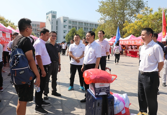 校党委副书记、校长祝玉华检查新生报到准备情况