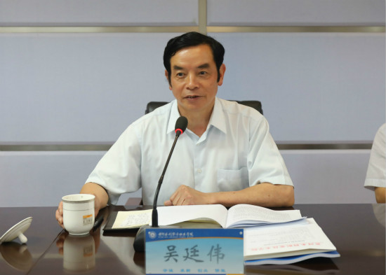 调研组副组长、郑州工业应用技术学院党委书记吴廷伟代表调研组讲话
