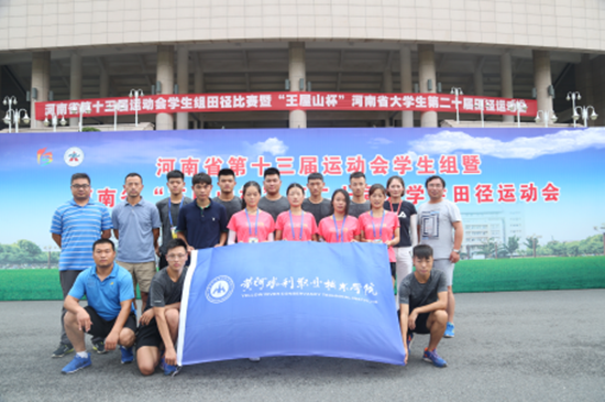 7月15日—20日,河南省第十三届运动会大学生组田径比赛暨河南省大学生第二十届田径运动会在郑州大学举行。我校以副校长焦爱萍为团长,体育部主任刘盎为领队,熊西宇、刘建民、和琰为教练,12名学生为参赛运动员组成的代表团参加本次比赛。经过5天的激烈角逐,我校代表团共获得1枚金牌、1枚银牌、4枚铜牌、2个第五名、4个第六名、2个第八名,最终取得专科甲组团体总分第3名的佳绩。