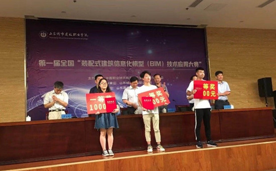 7月14日,由中国职业技术教育学会主办,山东城市建设职业技术学院承办的第一届装配式建筑信息化模型(BIM)技术应用大赛在山东城市建设职业技术学院举行。大赛共有来自15个省(市、自治区)的38所职业院校200名选手参加比赛,我校由土木与交通工程学院王付全、李向、宋艳清等教师指导的王康、田之垚、陈嘉豪、李智杰等4位同学组成的代表队在比赛中脱颖而出,勇夺第1名,荣获团体一等奖。